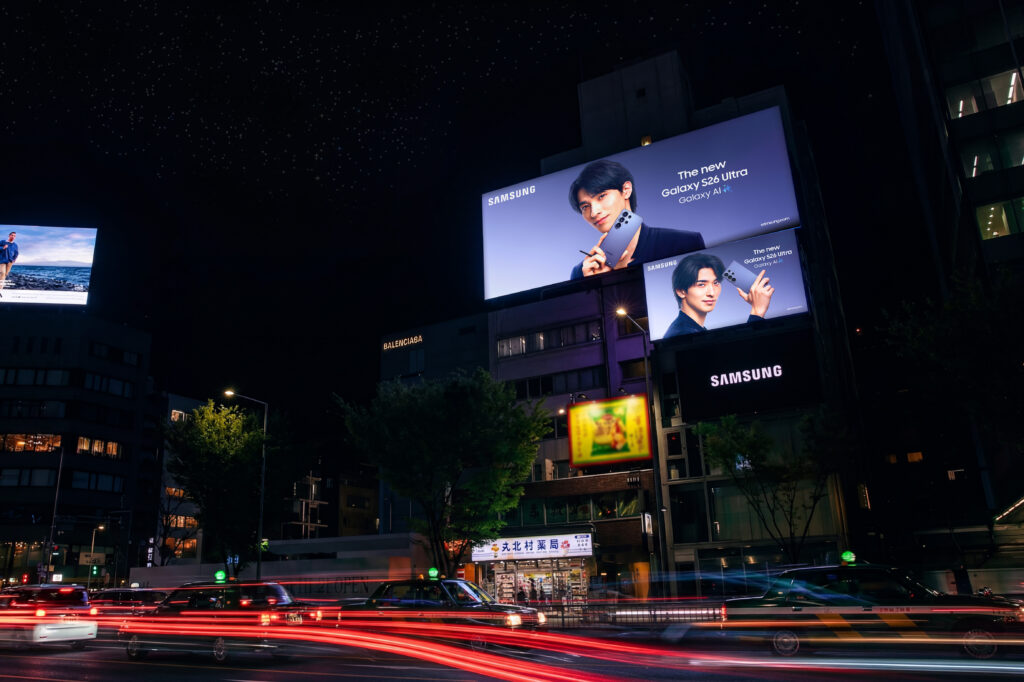 制作したクリエイティブは、全国の家電量販店およびSamsung Galaxy店舗に加え、渋谷・表参道エリアのOOH広告として展開されています。